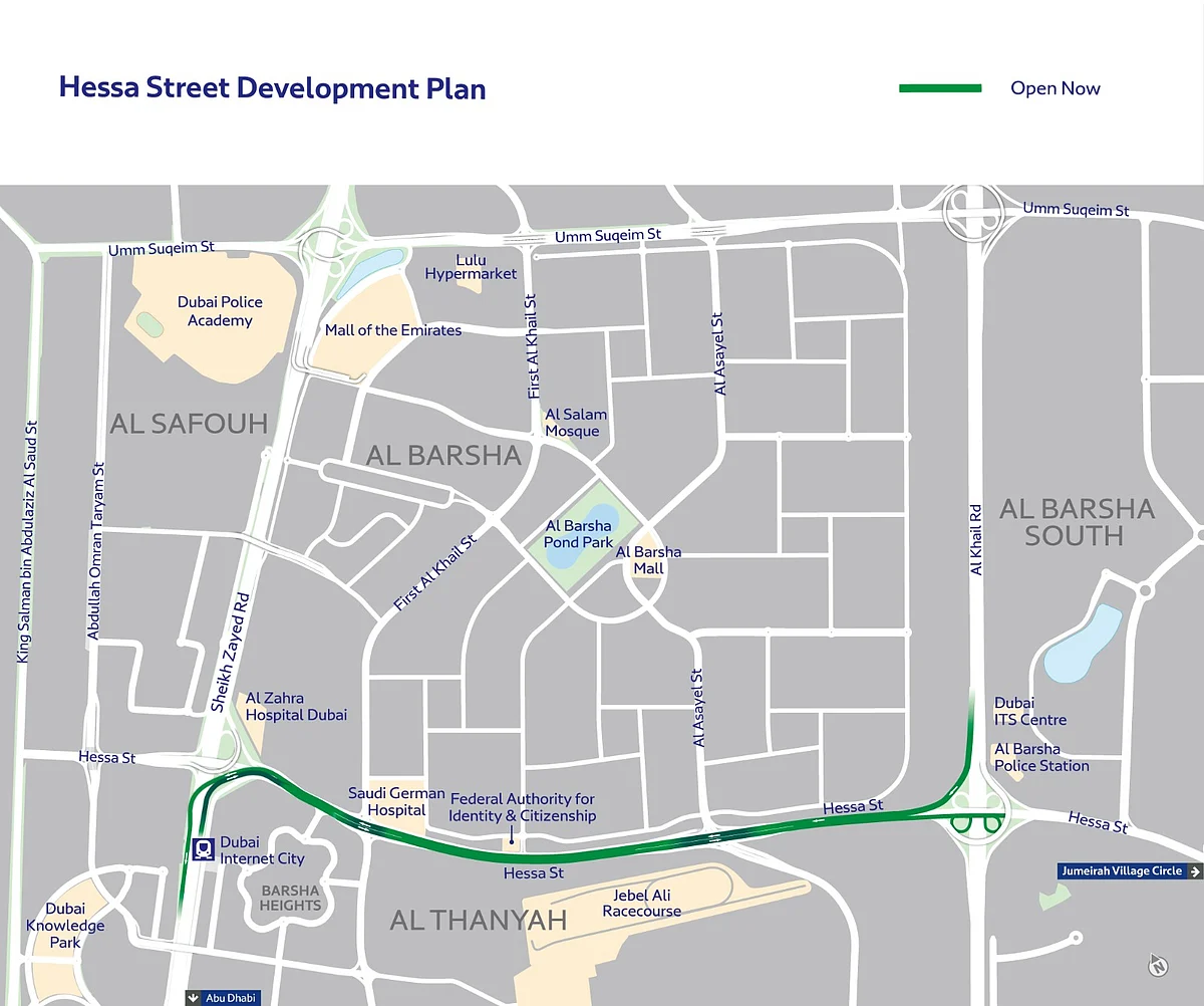 A major part of the answer lies in the road itself. Dubai's Roads and Transport Authority (RTA) has completed the 4.5-kilometre Hessa Street development between Sheikh Zayed Road and Al Khail Road, widening the road from two lanes to four in each direction, while adding flyovers, ramps and upgrades at key intersections.
