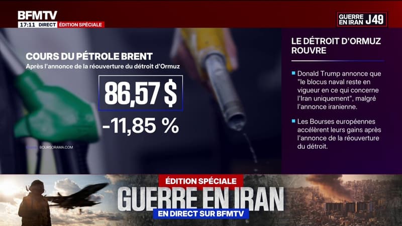 Au lendemain du début du cessez-le-feu entre Israël et le Liban, l'Iran a annoncé que le détroit d'Ormuz est "complètement ouvert" pour tous les navires commerciaux pour la durée de la trêve. Une annonce qui a eu un effet immédiat sur le cours du pétrole.