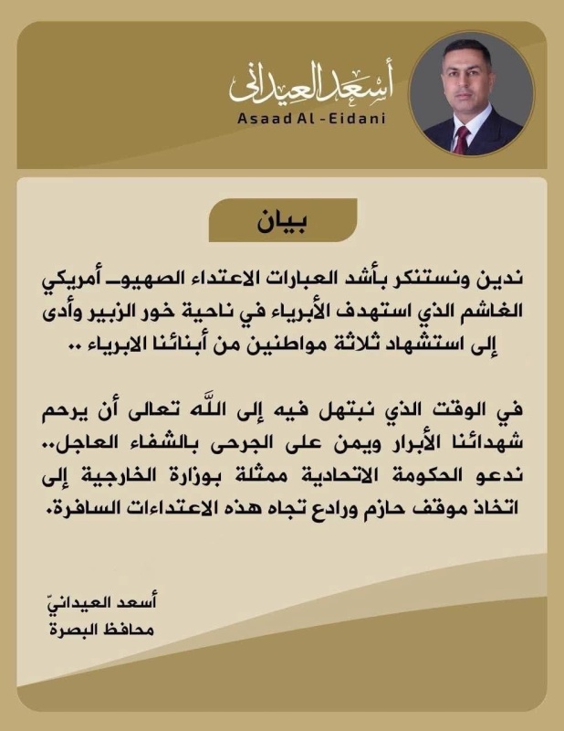 منذ 3 دقائقمحافظ البصرة يدعو الخارجية لاتخاذ موقف حازم ورادع اتجاه الاعتداءات السافرة