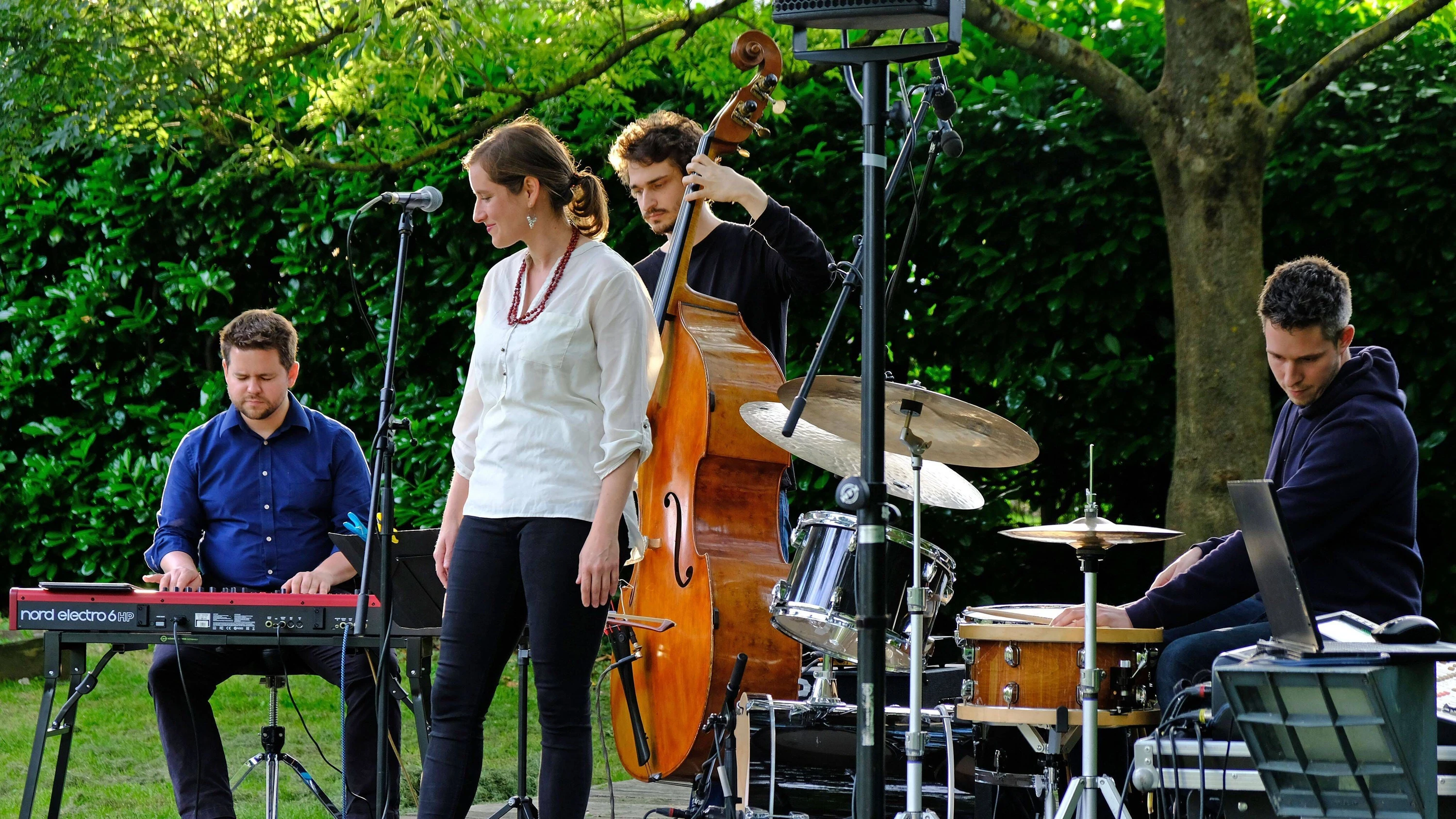 Sara Decker in Frankfurt : Fünf Frauen mit neuen TönenVon Wolfgang Sandner24.04.2026, 10:23Lesezeit: 3 Min.Bildbeschreibung ausklappenMittlerweile rein weiblich unterwegs: Die Sängerin Sara Decker, hier bei einem früheren Open-Air-Auftritt in Aachen.ImagoMit ihrer neuen Band Expand findet die Sängerin Sara Decker einen ganz ungewöhnlichen und poetischen Klangraum. Was noch knirscht, wird im Zusammenspiel garantiert gut werden.Zusammenfassung Anhören Merken TeilenVerschenkenDrucken Zur App Es begann mit einem ungemein feinfühligen Kontrabass-Solo von Tabea Kind. Klangfarblich reich, nuanciert in der Artikulation, dynamisch kein Ton dem nächsten gleichend, kraftvoll und doch bisweilen vorüberhuschend wie ein Windhauch, sehr bewusst gestaltet, aber vollkommen natürlich wirkend: eine vielversprechende Introduktion.Gegen Ende des Konzerts interpretierte die Sängerin Sara Decker „I Measure Every Grief I Meet“ von Emily Dickinson. Mit reiner Intonation, ohne Vibrato und doch mit warmer Intensität über den hintergründigen Text der Dichterin musikalisch angemessen grübelnd, ob manch individuell gefühlter Kummer nicht doch auch ein allgemein menschlicher sein könnte: ein schöner, elegischer Epilog.Für den Auftritt mit ihrem neu besetzten Quintett Expand in der Frankfurter Romanfabrik hatte die Komponistin und Sängerin Sara Decker einen bemerkenswerten musikalisch-poetischen Rahmen gefunden. Was sich dazwischen abspielte, mag nicht ganz die Erwartungen erfüllt haben, die das großartige Vorspiel geweckt hatte, und auch nicht dem entsprochen haben, was am Ende so anrührend wehmütig stimmte. Geschenkt. Es kann nicht reibungslos abgehen, wenn talentierte Musiker neu zusammenkommen, um kreativ zu sein, im Jazz zumal, wo musikalischer Sinn sich spielend bildet, nur bedingt planbar ist. Wer es glatt haben will, muss eine andere musikalische Baustelle aufsuchen.Gut ausgebildet, aufeinander achtend: Das kann noch mehr werdenWas die fünf Musikerinnen zu bieten hatten, war ohnehin nicht...