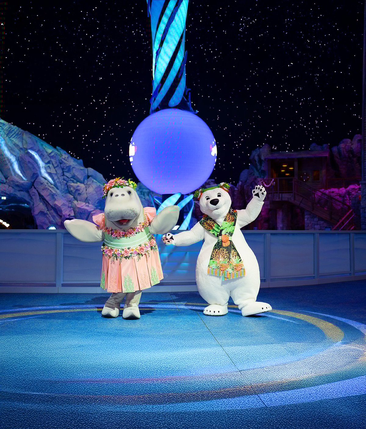 Over in the Abu Dhabi Ocean, guests are greeted by impressive sand art sculptures built around the journey of a sea turtle, a detail that sets a fitting tone for a celebration rooted in marine life and the natural world.