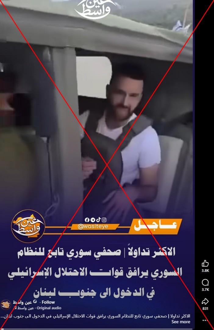 خلال الأشهر الماضية، عقدت إسرائيل والسلطات السورية الجديدة جولات عدة من المحادثات واتفقتا على إنشاء آلية لتبادل المعلومات الاستخباراتية في إطار سعيهما للتوصل إلى اتفاق أمني. وفي هذا السياق، تداول مستخدمون لمواقع التواصل الاجتماعي فيديو زعم ناشروه أنّه لصحافي سوري يرافق قوات إسرائيلية في جنوب لبنان.إلا أنّ الفيديو في الحقيقة يصوّر ناشطاً من عرب إسرائيل.