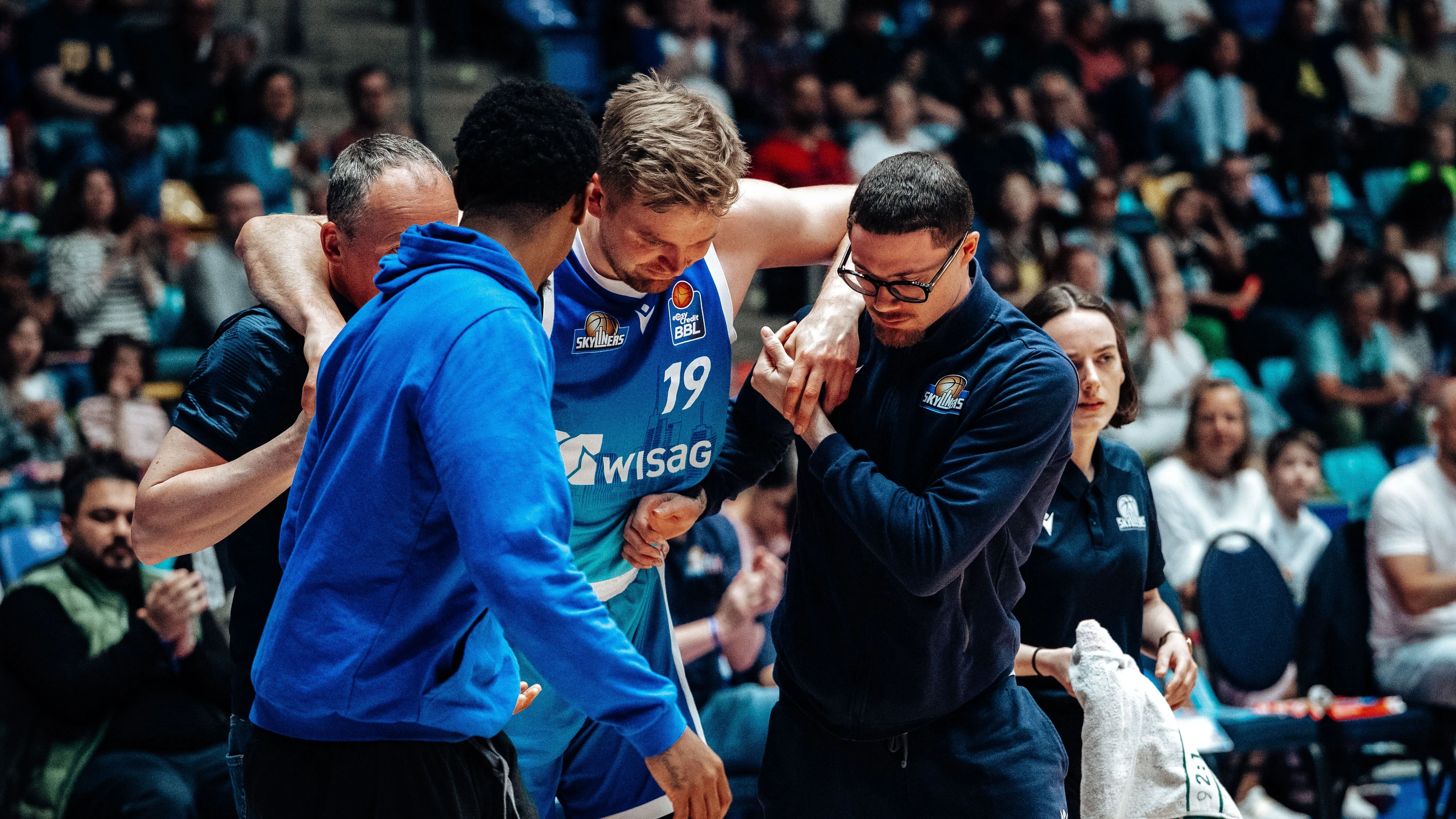 Die deutliche Skyliners-Niederlage gegen Berlin wird überschattet von Till Papes Schmerzen. Um die Play-Ins zu erreichen, benötigen die Frankfurter Basketballspieler ein kleines Wunder.