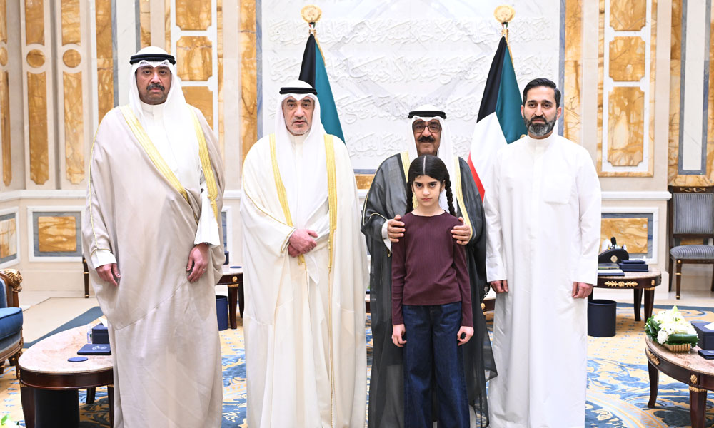 كما استقبل سموه رعاه الله أسرة الشهيدة الطفلة من الجنسية الإيرانية إلنا عبدالله حسين التي استشهدت إثر تعرض منزل أسرتها للقصف خلال الاعتداءات الآثمة من قبل صواريخ العدوان الإيراني الغاشم على المواقع المدنية بدولة الكويت.