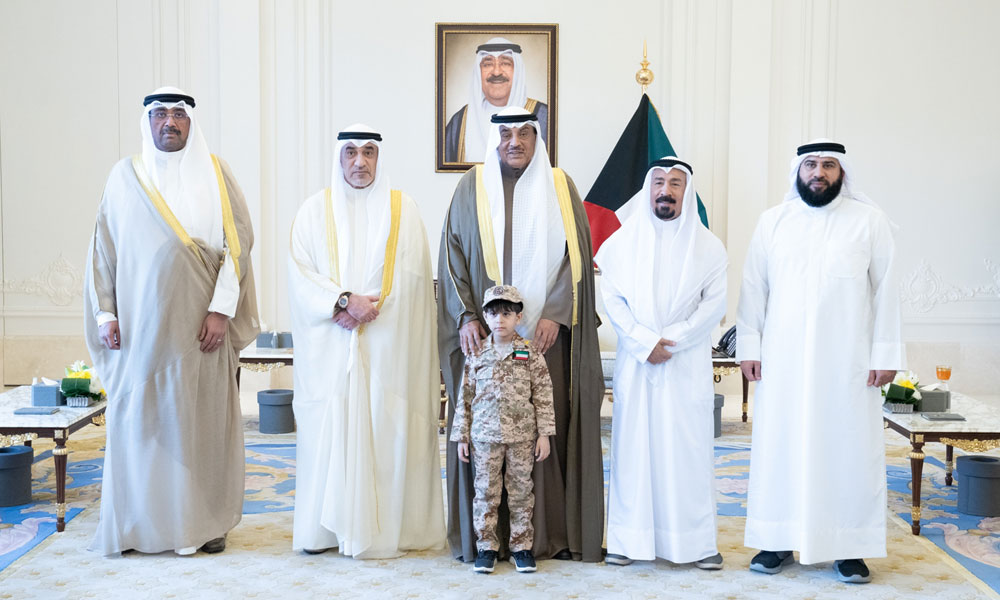 استقبل سمو ولي العهد الشيخ صباح خالد الحمد الصباح حفظه الله بقصر بيان صباح اليوم معالي نائب الأول لرئيس مجلس الوزراء ووزير الداخلية الشيخ فهد يوسف سعود الصباح ومعالي وزير الدفاع الشيخ عبدالله علي عبدالله السالم الصباح وأسر شهداء الواجب المغفور لهم بإذن الله تعالى الرقيب وليد مجيد سليمان والرقيب عبدالعزيز عبدالمحسن داخل ناصر من منتسبي القوة البحرية بالجيش الكويتي والمقدم ركن عبدالله عماد الشراح والرائد فهد عبدالعزيز المجمد من منتسبي الإدارة العامة لأمن الحدود البرية بوزارة الداخلية والذين استشهدوا أثناء قيامهم بواجبهم الوطني في إطار المهام الوطنية المنوطة بهم في التصدي والردع للاعتداء الإيراني الآثم على دولة الكويت.