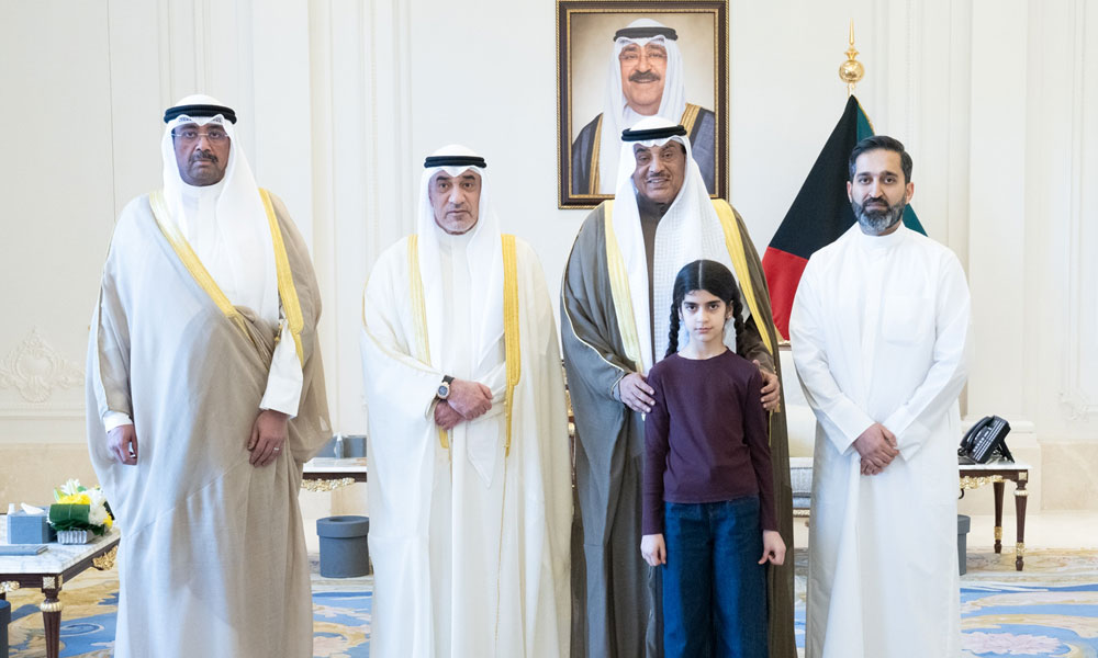 كما استقبل سموه حفظه الله أسرة الشهيدة الطفلة من الجنسية الإيرانية إلنا عبدالله حسين التي استشهدت إثر تعرض منزل أسرتها للقصف خلال الاعتداءات الآثمة من قبل صواريخ العدوان الإيراني الغاشم على المواقع المدنية بدولة الكويت.