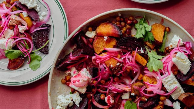 Geröstetes Gemüse mit Baukastensystem: Von diesem äußerst wandelbaren Gericht – Süßkartoffeln! Rote Bete! Feta! – können Sie gleich ein ganzes Blech auf einmal zaubern.