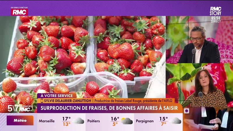 Noeud racineÉmissionsCharles MatinSylvie Delaurier-Zanuttigh à votre service : Surproduction de fraises, de bonnes affaires à saisir - 13/04Chaque matin à 5h50 dans Le Morning RMC, un conseil conso qui impactera votre quotidien Aujourd'hui à 06h32 | Durée : 4:59PartagerX