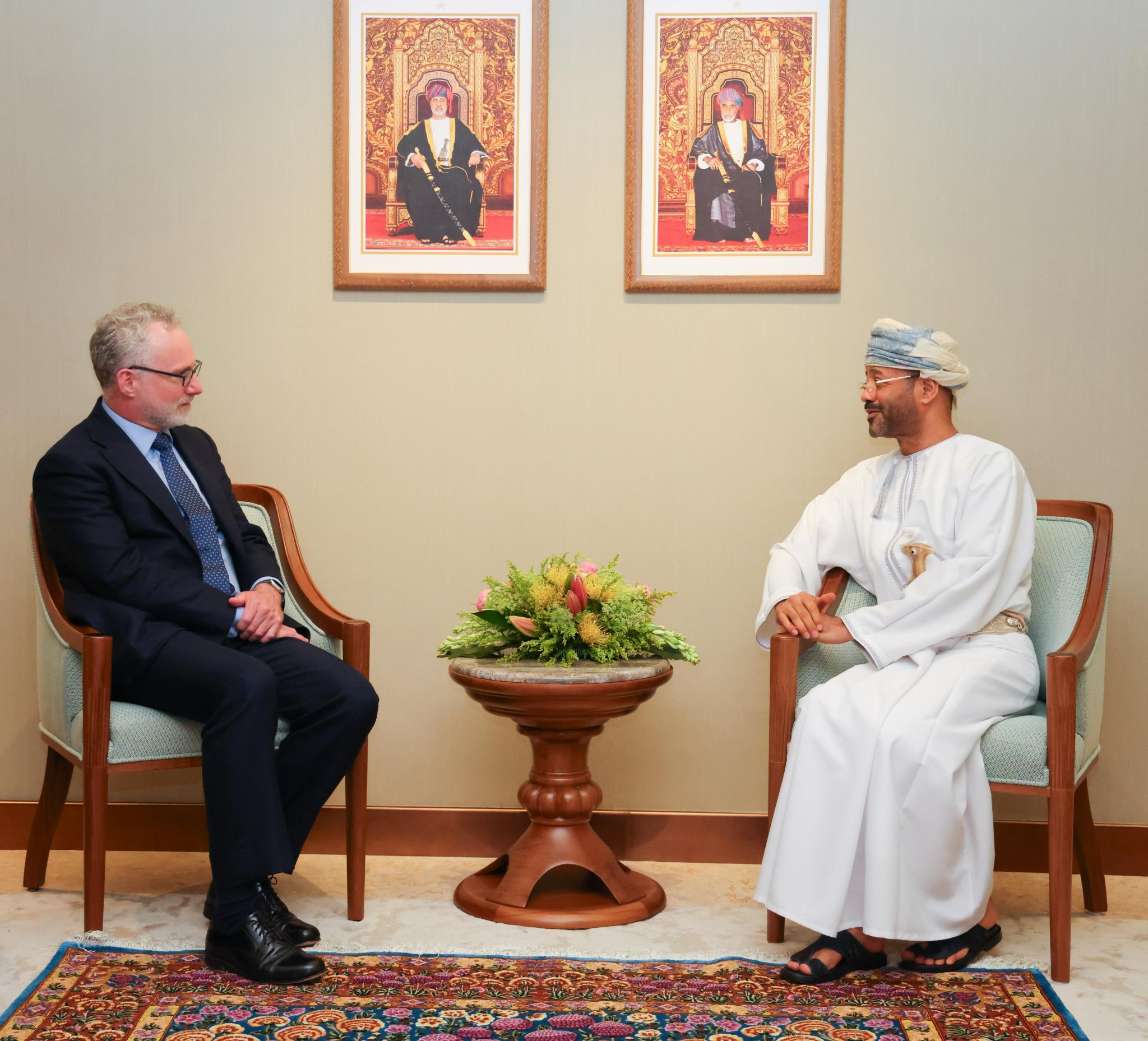 العمانية- معالي السّيد وزير الخارجية ومعالي مبعوث رئيس الوزراء الكندي يؤكّدان خلال لقائهما بـمسقط على تطوير علاقات التعاون والشراكة بين البلدين الصديقين في مختلف المجالات، وأهمية تكثيف التشاور والعمل المشترك وتطوير آليات العمل الدولي لمواجهة التحدّيات العالمية الجديدة، وترسيخ نهج الحوار والدبلوماسية.