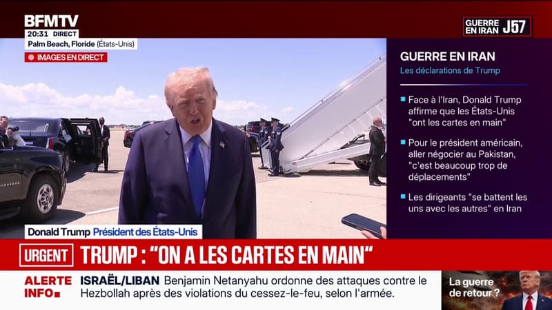 Donald Trump a dit avoir annulé le déplacement attendu de ses émissaires Steve Witkoff et Jared Kushner pour des discussions avec l'Iran à Islamabad au Pakistan. "J’ai dit à mes équipes, alors qu’elles se préparaient à partir: 'Non, vous n’allez pas faire un vol de 18 heures pour aller là-bas. Nous avons toutes les cartes. Ils peuvent nous appeler quand ils veulent, mais vous n’allez pas faire un vol de 18 heures pour rester assis à parler de rien'", a-t-il déclaré à la correspondante de Fox News à la Maison Blanche.