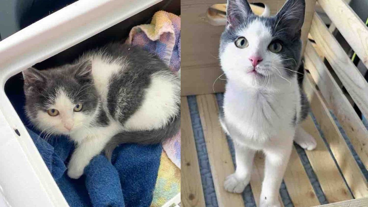 The kitten, named Gaby, was less than two months old, underweight, and scruffy. Chatons Orphelins Montreal, a volunteer-run rescue, took him into their care. Though he appeared in good spirits, Gaby arrived with several health challenges.