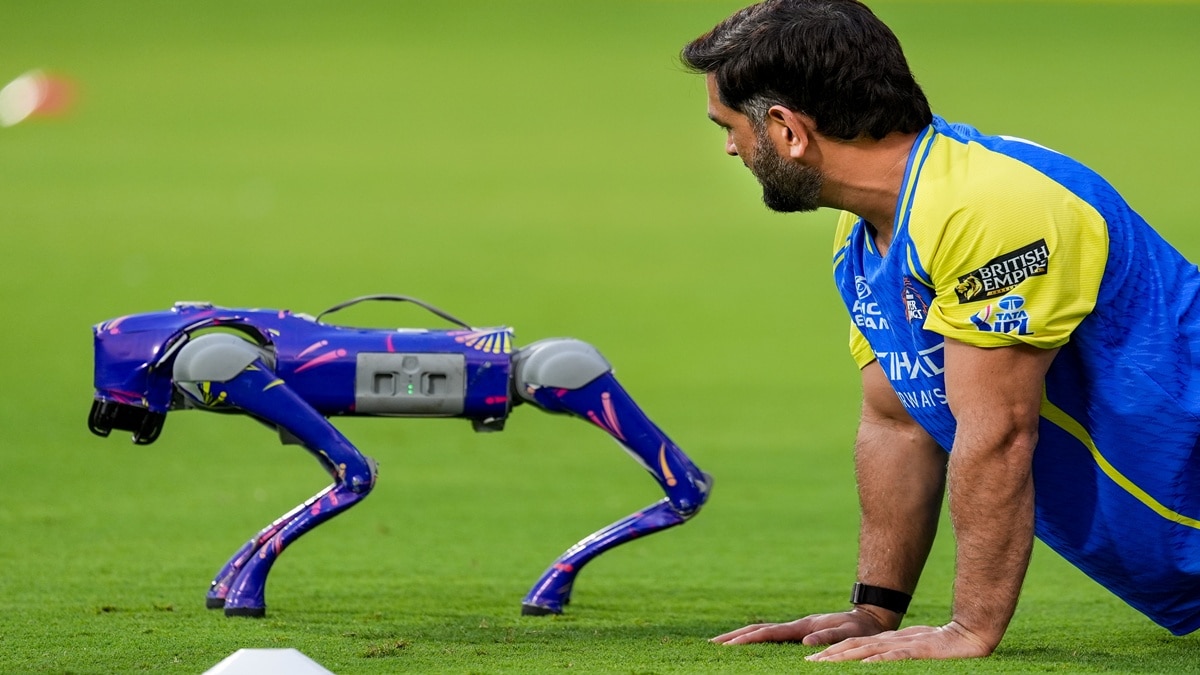 धोनी मैदान पर हुए लोटपोट, रोबोट संग करते दिखे मस्ती, वीडियो वायरल