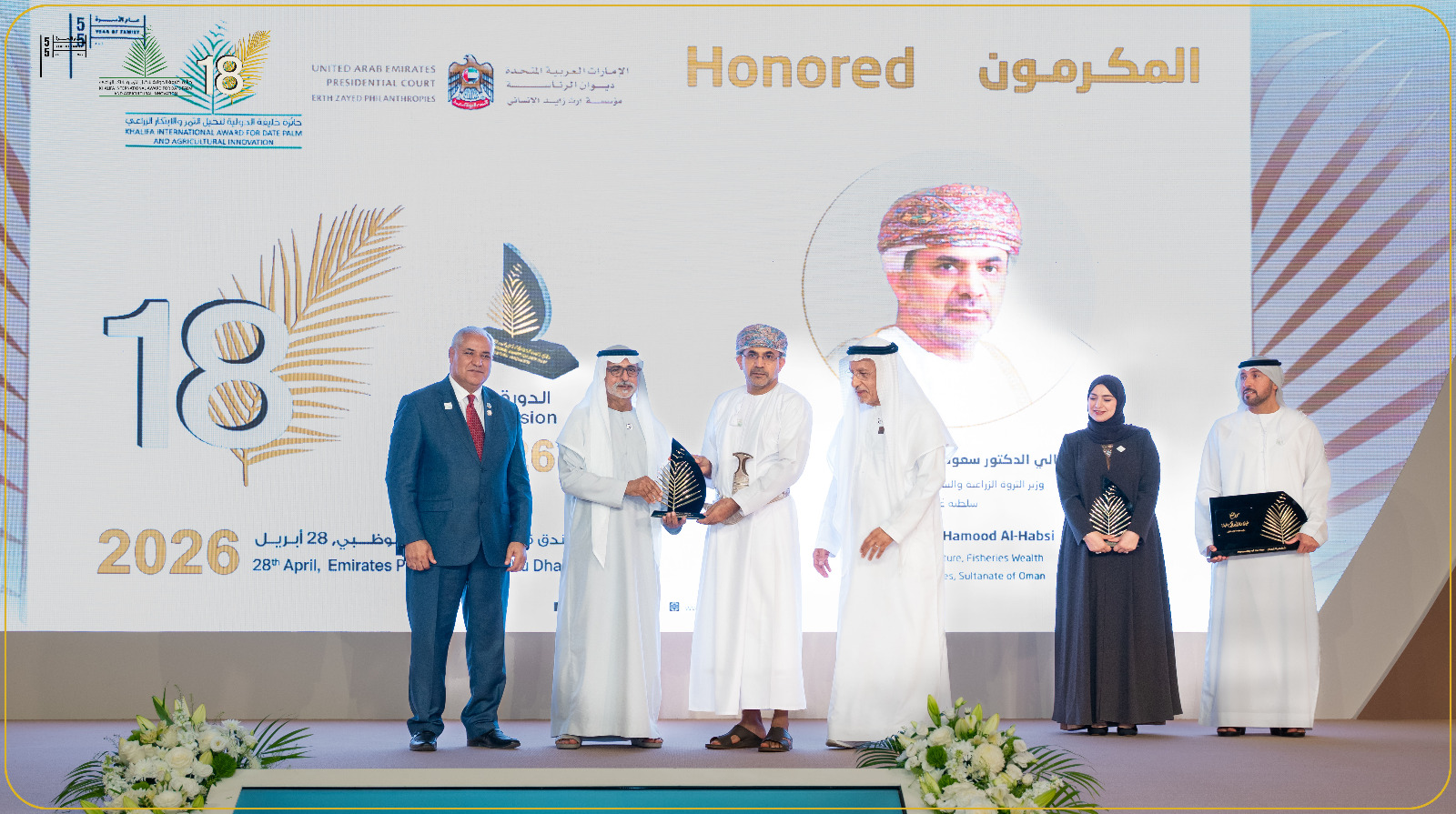 الصحوة – أعلنت جائزة خليفة الدولية لنخيل التمر والابتكار الزراعي اليوم تكريم معالي الدكتور سعود بن حمود الحبسي وزير الثروة الزراعية والسمكية وموارد المياه ضمن الشخصيات الفائزة في دورتها الثامنة عشرة لعام 2026م، تقديرًا لدوره الريادي وإسهاماته البارزة في دعم وتنمية قطاع النخيل وإنتاج التمور.