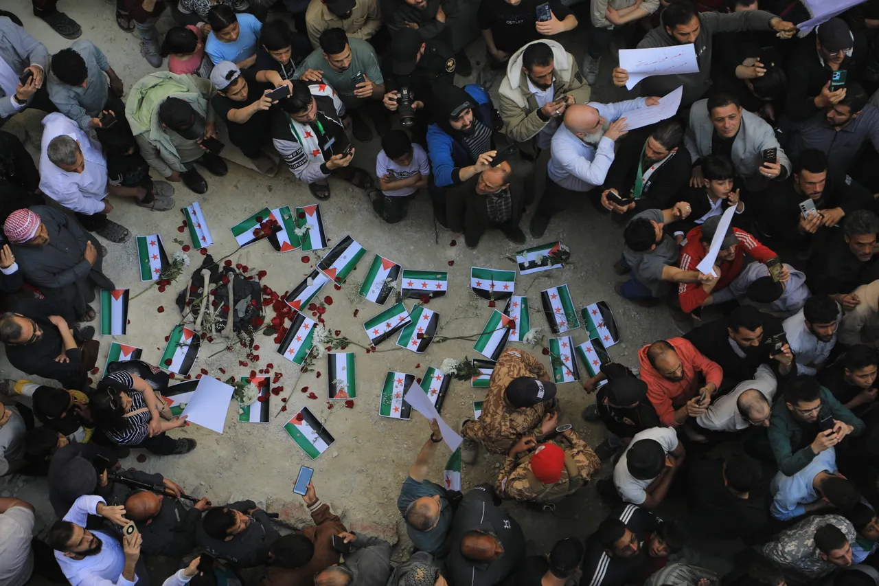 سكان التضامن في دمشق يرحبون باعتقال المجرم أمجد يوسف ويطالبون بمحاكمته في موقع المجزرة / AA