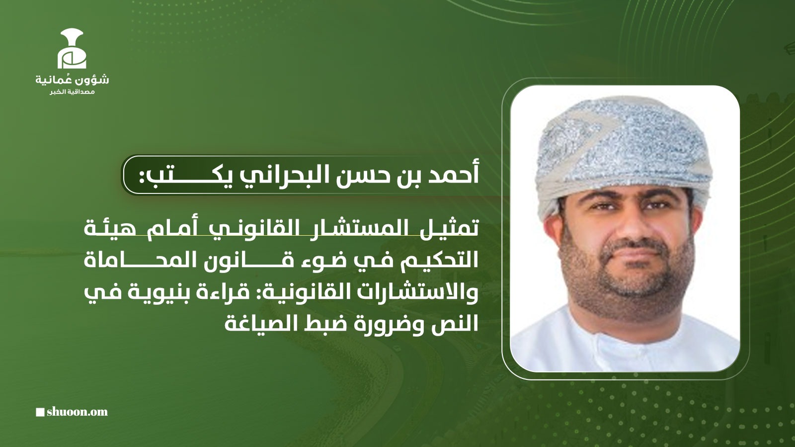 في ظل صدور قانون المحاماة والاستشارات القانونية بموجب المرسوم السلطاني رقم ٤١ / ٢٠٢٤، برزت جملة من الإشكالات التفسيرية التي تستدعي قراءة متأنية تتجاوز ظاهر النص إلى بنيته الداخلية ومقاصده التشريعية، ولعل من أبرز هذه الإشكالات مسألة تمثيل المستشار القانوني أمام هيئات التحكيم، في ضوء ما يبدو من عدم اتساق بين بعض النصوص، الأمر الذي فتح بابًا للاجتهاد قد يتجاوز حدود الأمان التشريعي إذا لم يُضبط بضوابط التفسير السليم.