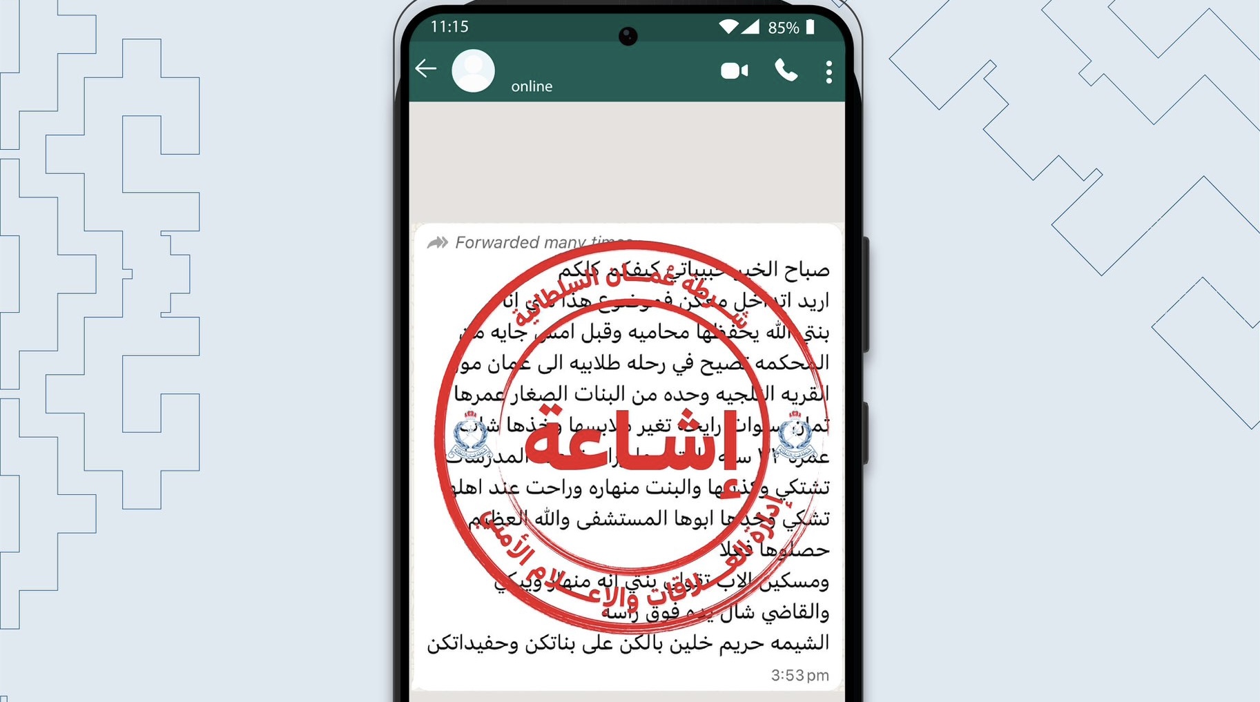 الصحوة – أفادت شرطة عمان السلطانية بأن لا صحة لما يُتداول عبر بعض وسائل التواصل الاجتماعي حول وقوع جريمة اعتداء بحق طالبة أثناء ذهابها في رحلة مدرسية.