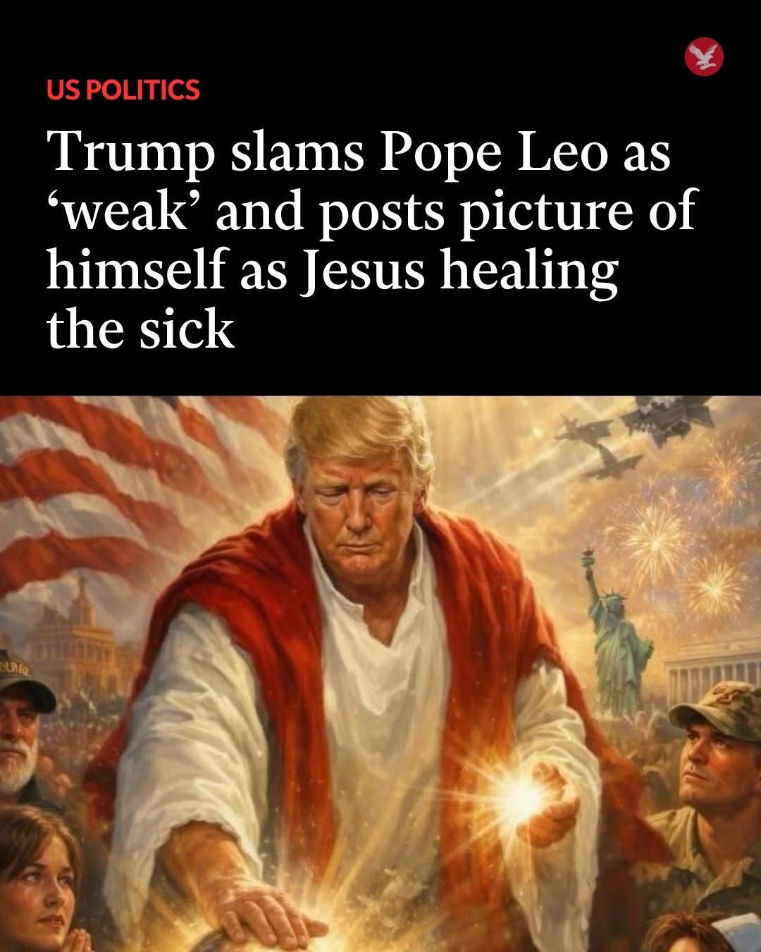 ونشر ترامب صورة مثيرة للجدل على حسابه، ظهر فيها متقمصاً شخصية السيد المسيح وهو يشفي المرضى، ما أثار موجة واسعة من الانتقادات عبر منصات التواصل الاجتماعي.