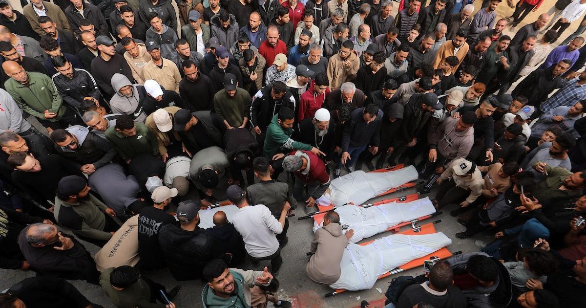 تشييع جثامين فلسطينيين سقطوا في غارة جوية إسرائيلية على مخيم الشاطئ