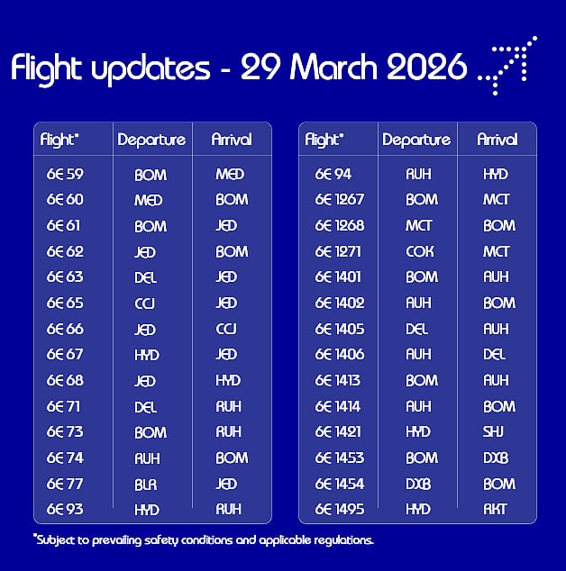 IndiGo: UAE flights on March 29: