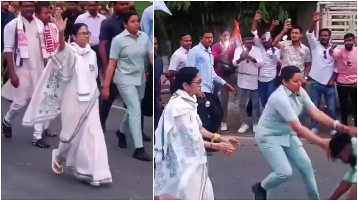 Video: Mamata Banerjee panics as man breaches security to touch her feet