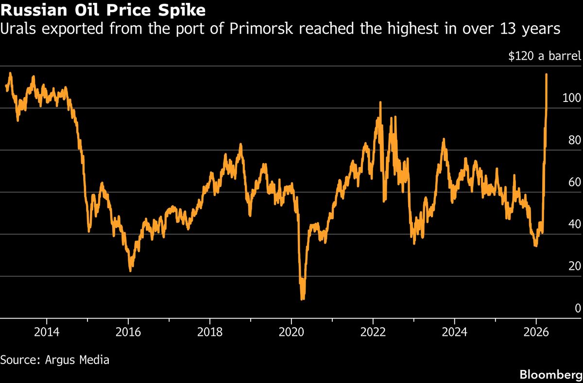 War in Iran Drives Russian Oil Prices to a 13-Year High