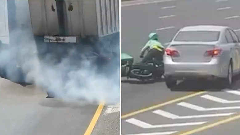 Watch: Delivery rider gets knocked down by driver; police warn against sudden swerving
