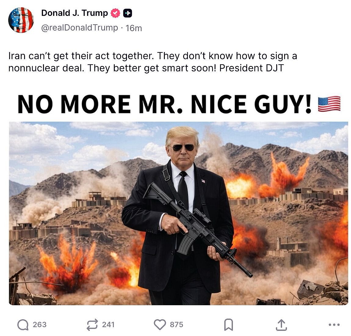 What Trump’s ‘No more Mr Nice Guy’ post means for Iran talks