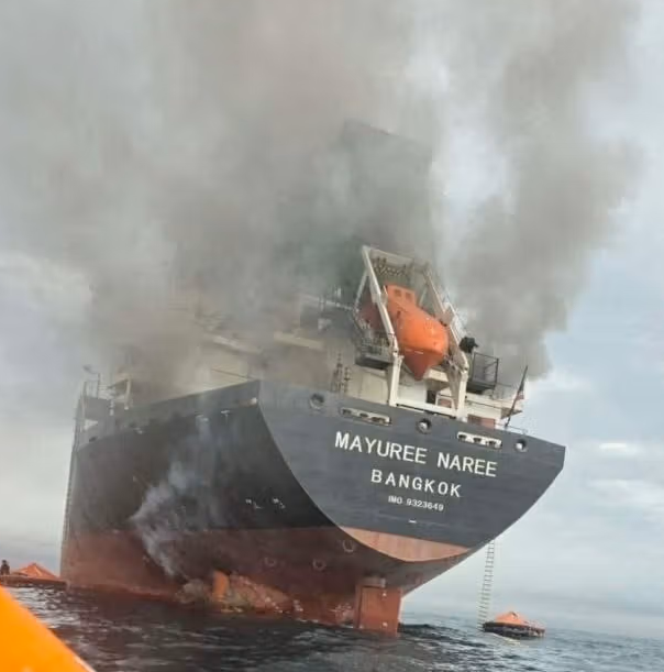یک کشتی باری تایلندی پس از حمله در تنگه هرمز در سواحل ایران به گل نشست