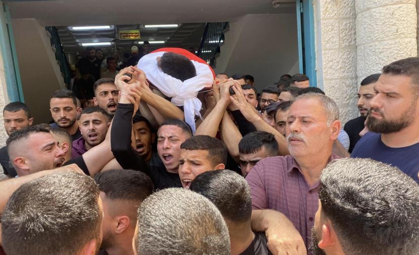 تشييع جثمان الشهيد مصطفى حمد في مخيم قلنديا شمال القدس