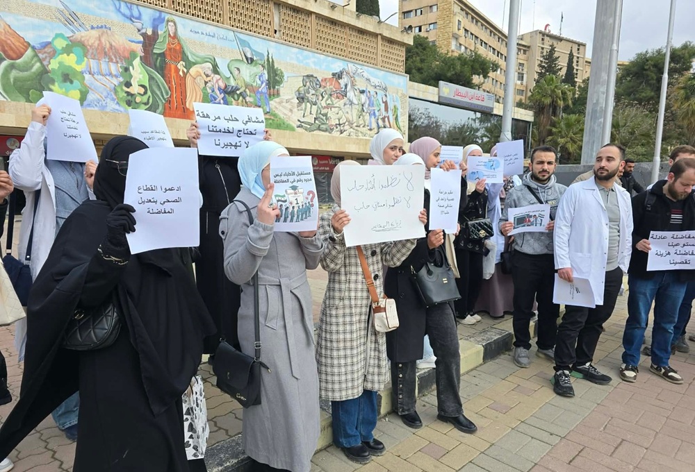 نفذت مجموعة من طلاب كلية الطب البشري في جامعة حلب اعتصاماً احتجاجياً، للمطالبة بزيادة عدد المقاعد المخصصة للمحافظة ضمن "المفاضلة الطبية الموحدة"، محذرين من تبعات مØ