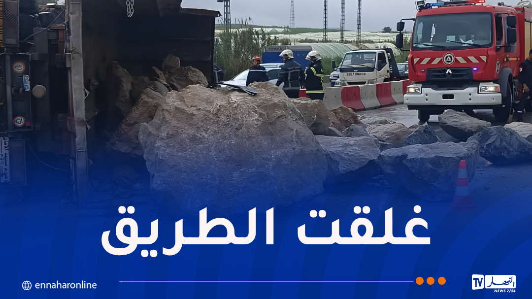 إنقلاب شاحنة مُحملة بالحجارة في تيبازة
