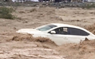 نجاة قائد مركبة من الانجراف.. جازف بعبور أحد مجاري الأودية في دبا الفجيرة