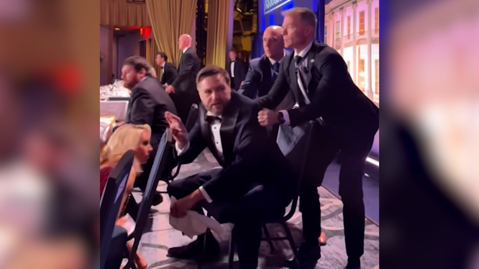 من زاوية جديدة.. لحظة إخلاء ترامب ونائبه فانس بحفل عشاء مراسلي البيت الأبيض