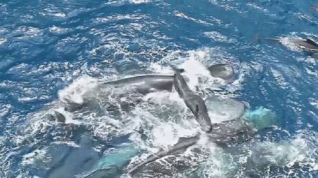 علماء يوثقون ولادة صغير لحوت العنبر وتعاون الحيتان في رعايته (فيديو)