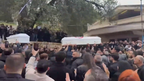 جنازة مسؤول "القوات اللبنانية" وزوجته اللذين قتلا في غارة إسرائيلية على قرية مسيحية