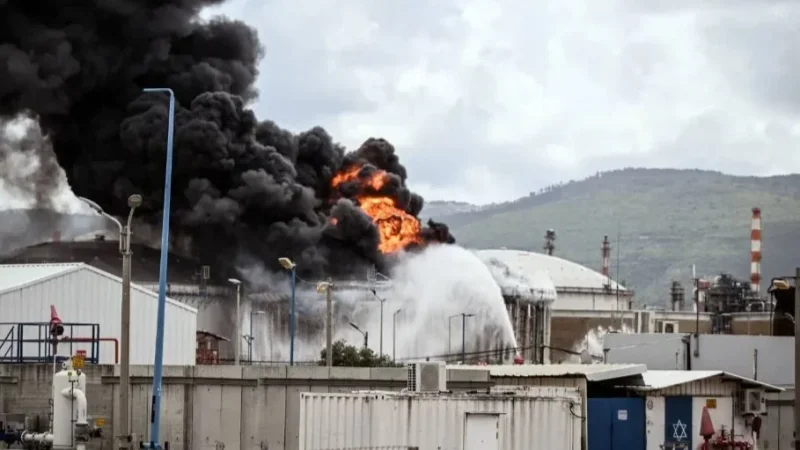 حريق في مصفاة بازان النفطية بحيفا بعد هجوم صاروخي إيراني