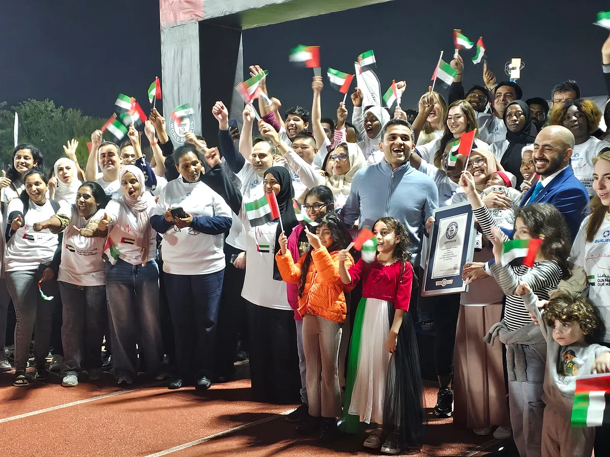 Scenes from the venue reflected the country’s diversity, with participants waving UAE flags, cheering, and celebrating as the Guinness World Records certificate was presented. Children stood alongside healthcare workers, turning the moment into a celebration rather than just a formal attempt.