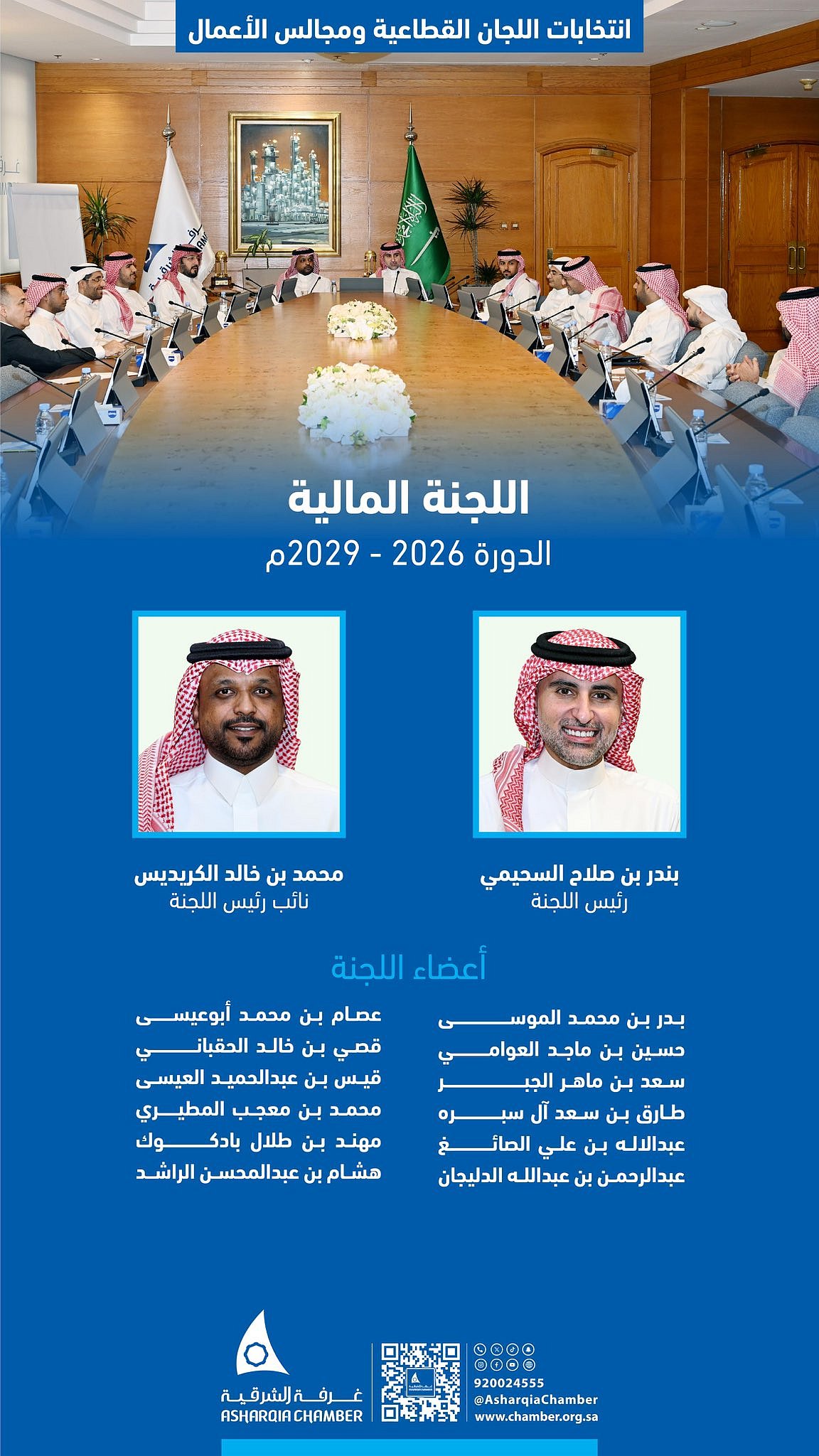 انتخاب بندر السحيمي رئيسًا للجنة المالية بغرفة الشرقية بالتزكية ومحمد الكريديس نائبًا لدورة جديدة