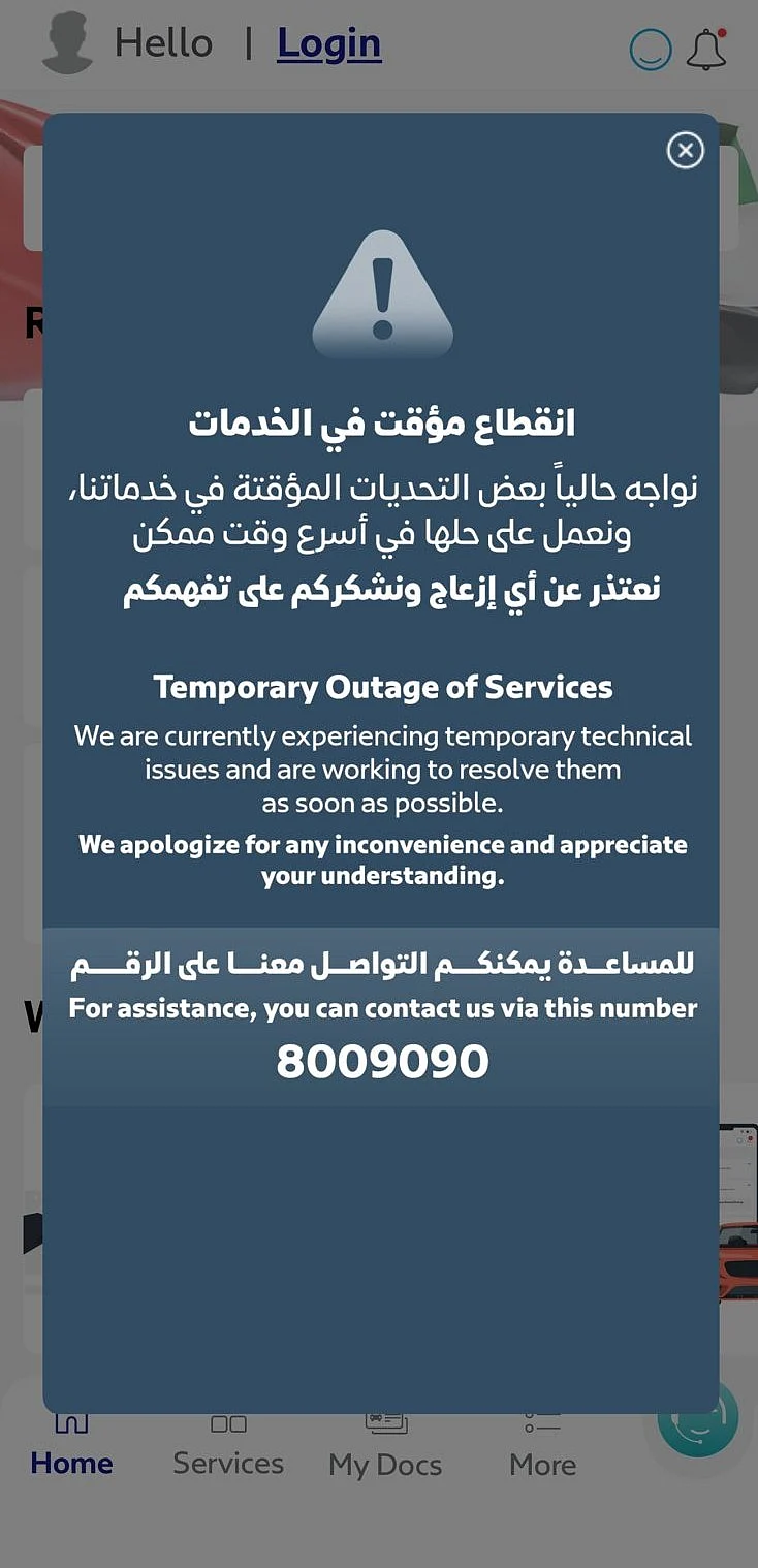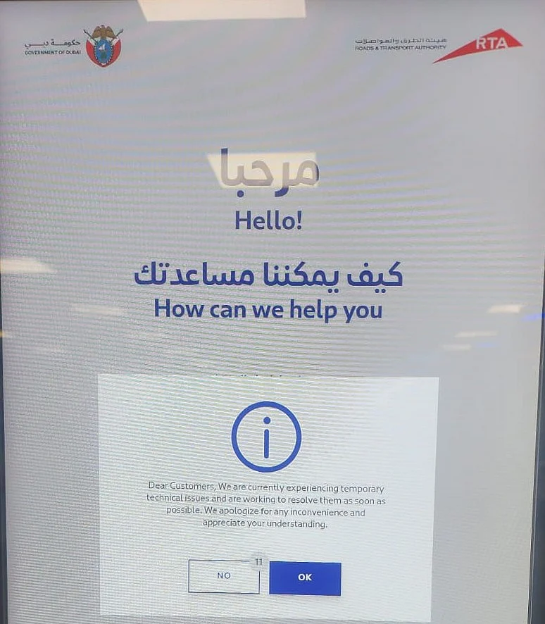 The RTA took notice of the issue, as some residents reported facing difficulties when accessing services such as vehicle registration renewals, booking inspection appointments, and fine payment.