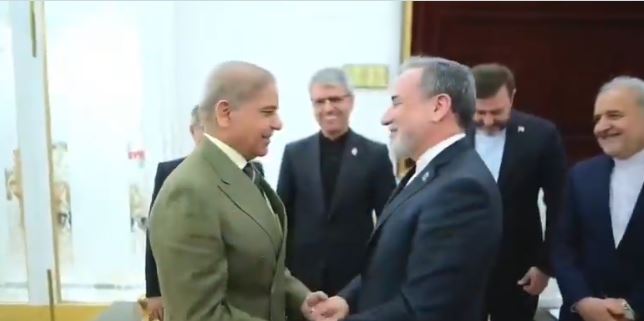 رئيس الوزراء الباكستاني يلتقي مع وزير خارجية إيران في إسلام آباد بحضور قائد الجيش .