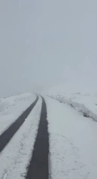 Cep telefonuyla kaydedilen görüntülerde karayolunun beyaza bürünmesi ve kar yağışı ve karayolunun iki tarafında yığılan metrelerce yükseklikte buluna kar kütleleri yer alıyor.