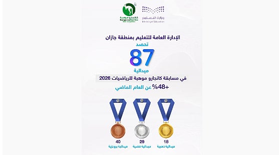 منذ 14 دقيقة«تعليم جازان» يحصد 87 ميدالية في مسابقة «كانجارو موهبة» للرياضيات 2026
