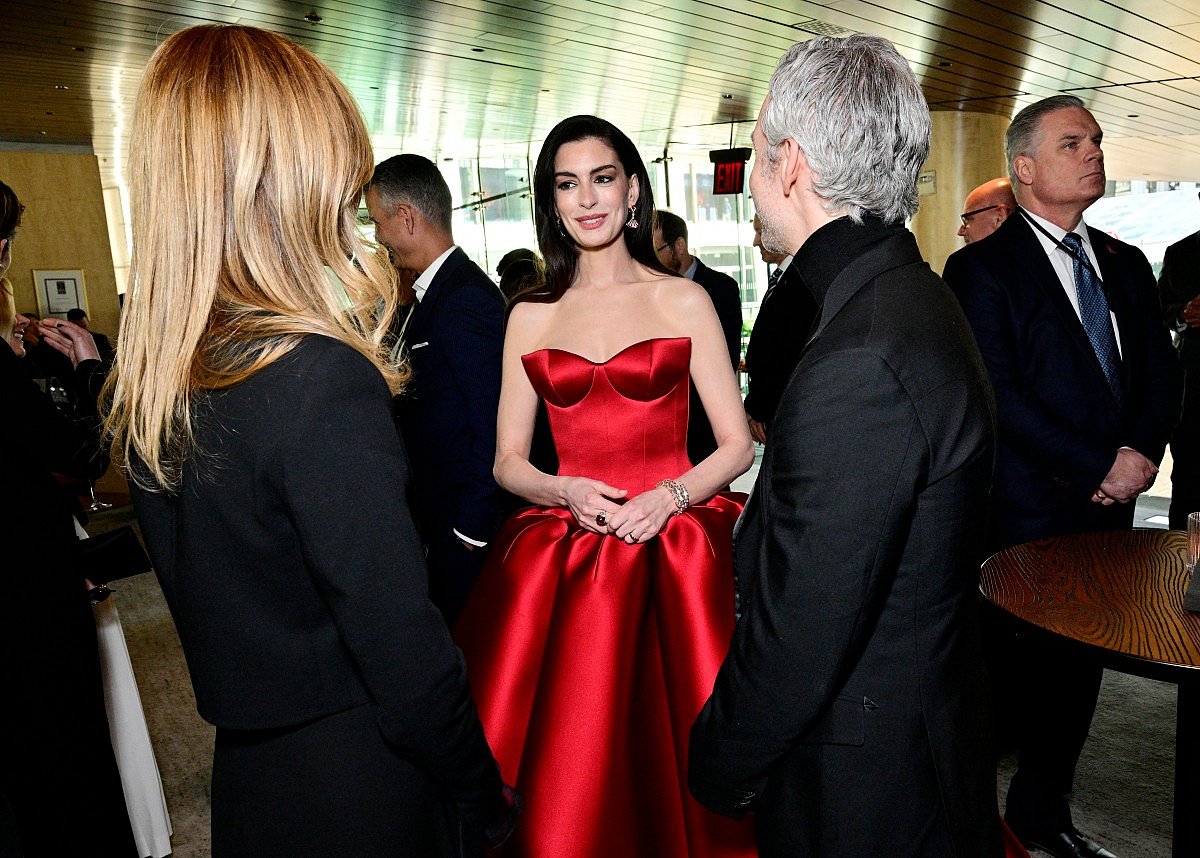 If you thought Anne Hathaway had retired her method-dressing era, think again. Dressed in custom Louis Vuitton by Nicolas Ghesquière, she wore a red satin moment, The look was precise, bordering on surgical. The tea-length hem gave her open-toe heels breathing room (and relevance).