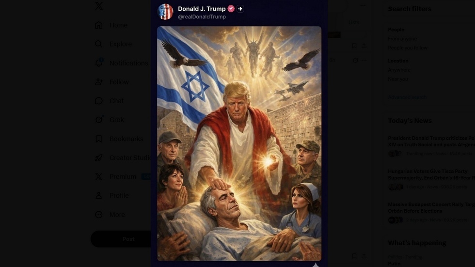 US President Donald Trump has shared an AI-generated image of himself as a robed, Christ-like figure healing a bedridden man, flanked by eagles, fighter jets, and US service members, with the Statue of Liberty and the US flag in the background. The post triggered backlash, with some users suggesting the figure being healed resembled the late convicted sex offender Jeffrey Epstein.