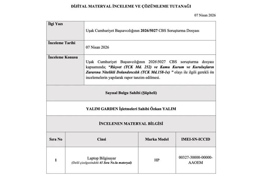 İstanbul merkezli operasyonun Uşak ayağında el konulan dijital materyaller üzerindeki sis perdesi aralandı. Uşak Cumhuriyet Başsavcılığı’nın 2026/5027 sayılı dosyası kapsamında, Başkan Özkan Yalım’a ait işletmelerden toplanan 52 adet dijital materyalin ön inceleme raporu tamamlandı. Savcılık kaynaklarından sızan bilgiler, belediye yönetimindeki usulsüzlüklerin yanı sıra şahsi bilgisayarlarda tutulan "özel arşivi" deşifre etti.