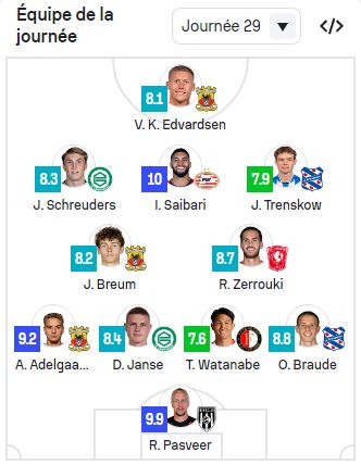 وجاء اختيار زروقي، الذي تحصل على تقييم 8.7 كخامس أفضل لاعب في التشكيلة. عقب تألقه في مواجهة ناديه تفينتي أمام فريقه السابق أجاكس أمستردام.