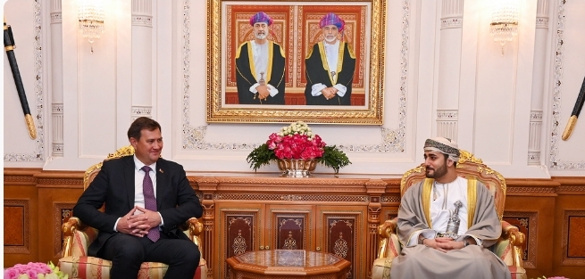 العمانية – شؤون وطنية استقبل صاحبُ السُّمو السّيد ذي يزن بن هيثم آل سعيد نائبُ رئيس الوزراء للشؤون الاقتصادية اليوم معالي ماكسيم ريزينكوف وزير خارجية جمهورية بيلاروس والوفد المرافق له. تم خلال المقابلة بحث سبل تعزيز التعاون الاقتصادي والاستثماري وتوسيع الشراكة بين البلدين، والتأكيد على أهمية ا...