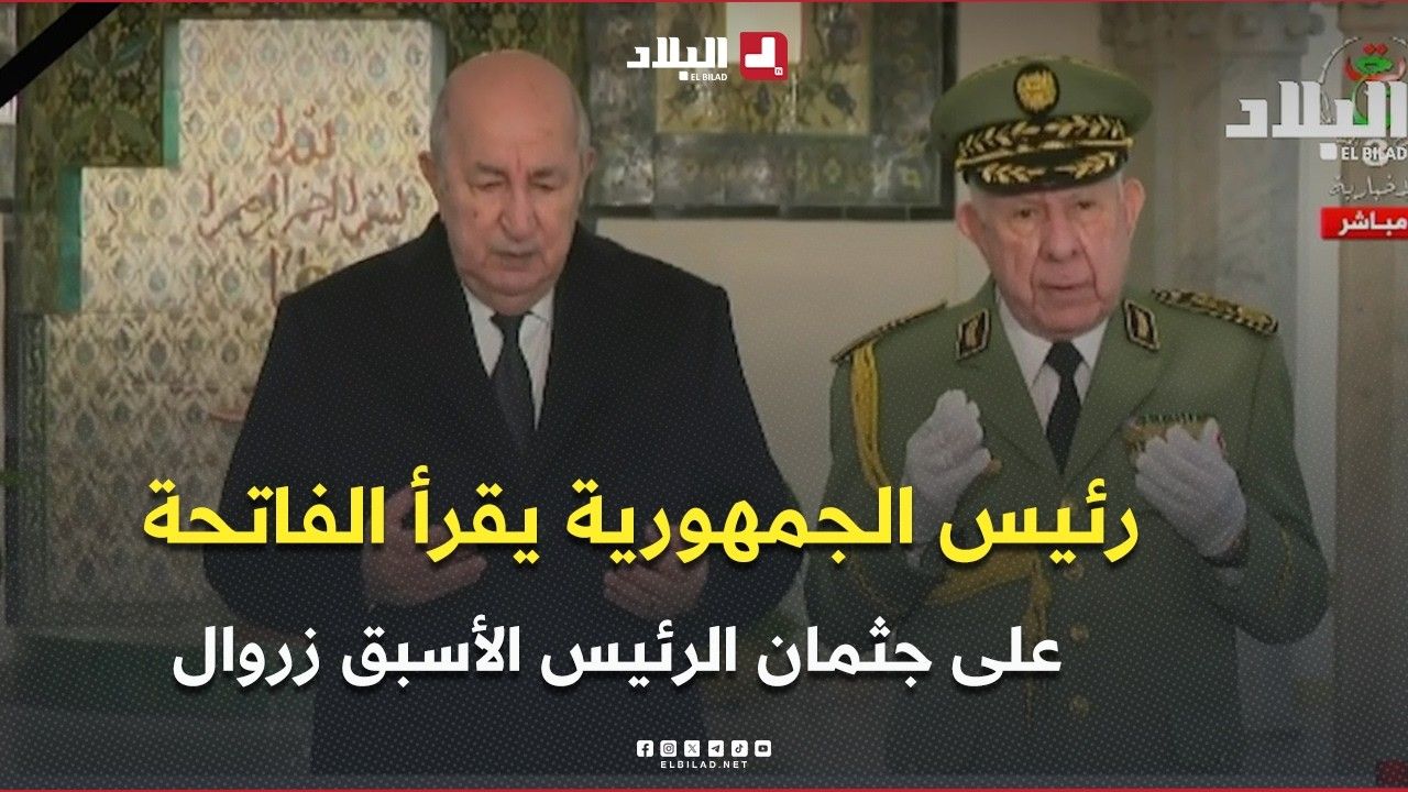 رئيس الجمهورية عبد المجيد تبون يقرأ الفاتحة على جثمان رئيس الجمهورية الأسبق المجاهد اليامين زروال بقصر الشعب.