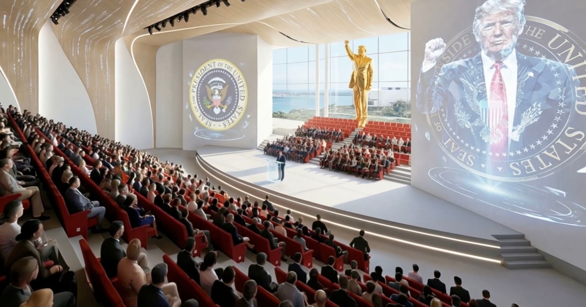 Trump releases his vision of a skyscraper presidential library complete with gold escalator and no books in sight