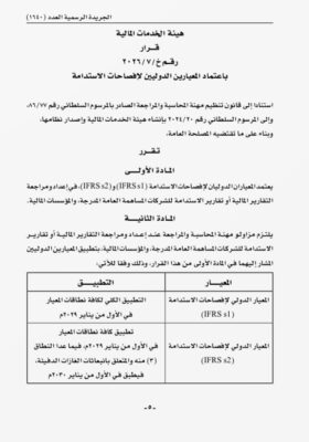 قرار باعتماد المعيارين الدوليين لإفصاحات الاستدامة